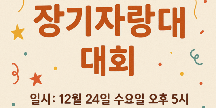 나눔터지역아동센터(시설장 문영숙)는 오는 12월 24일(수) 오후 5시(17시), 센터 202호 놀이방에서 **‘2025년 제4회 아름다운 나눔터 장기자랑대회’**를 개최한다고 밝혔다.