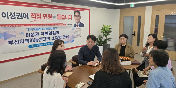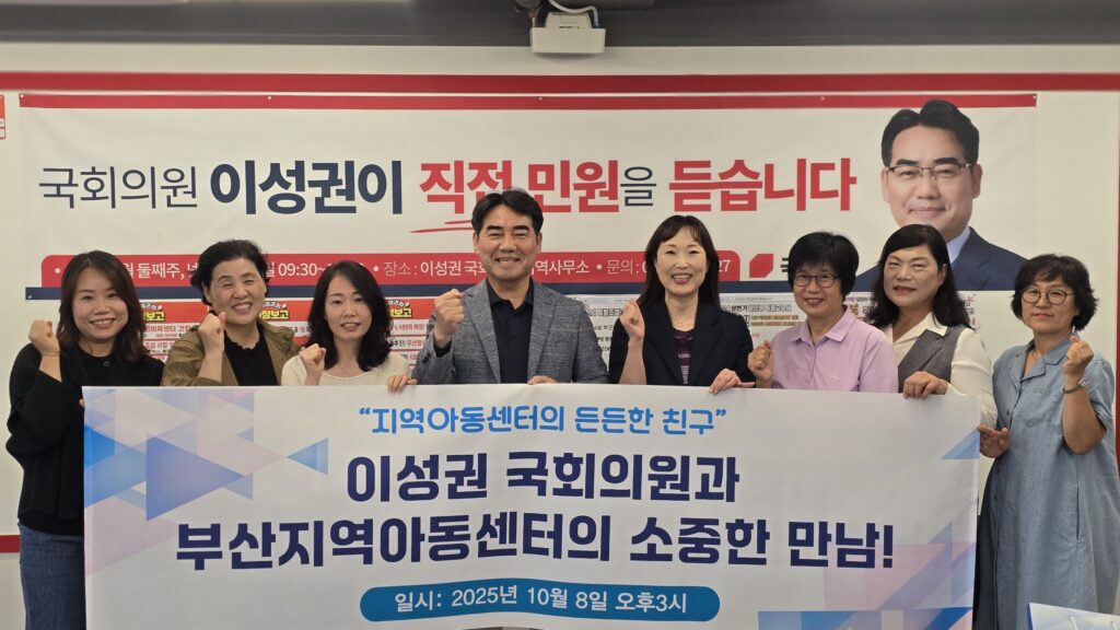 추석 연휴 기간임에도 불구하고, 지역아동센터 종사자 처우개선을 위한 간담회가 10월 8일 부산 사하구 이성권 국회의원 사무실에서 열렸다. 이번 만남은 명절임에도 지역아동센터 현안에 관심을 갖고 뜻깊은 자리를 마련한 것으로, 현장 관계자들로부터 깊은 감사의 뜻이 전해졌다.