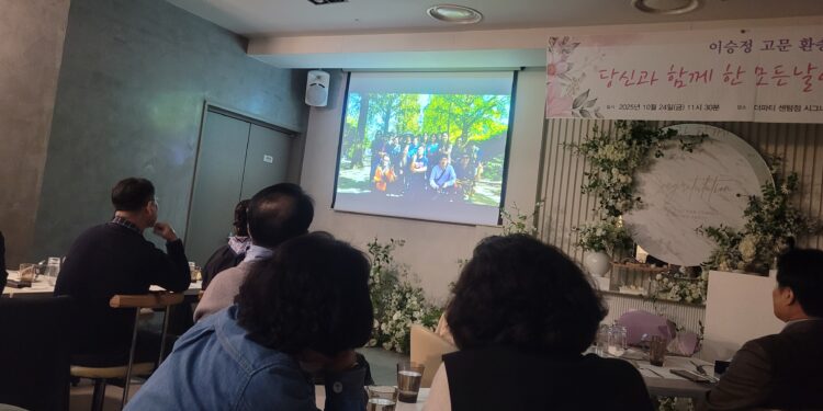 부산시전국지역아동센터협의회는 2025년 10월 24일(금) 오전 11시 30분, 더파티센텀점에서 이승정 고문의 환송회를 개최했다. 이번 환송회는 협의회 소속 관계자들이 참석한 가운데, 지난 수년간 지역아동센터의 발전을 위해 헌신한 이승정 고문의 노고를 기리고 감사의 마음을 전하기 위해 마련됐다. 사회는 김순옥 사무국장이 맡아 따뜻하고 격조 있는 분위기 속에서 행사가 진행됐다.