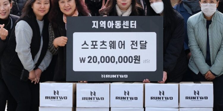 스포츠브랜드 RUNTWO는 연말 크리스마스를 맞아 약 2천만원 상당의 스포츠웨어를 취약계층 아동 및 청소년들을 위해 지역아동센터밀양협의회에 2023년 연말 나눔행사 전달식을 12월 19일(화요일) 전달식을 진행하였다.