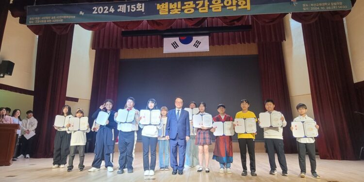 2024년 10월 26일, 부산교육대학교 참빛관 에서 부산의 아름다운 가을 날씨 속에서 제15회 별빛공감음악회가 성황리에 개최되었습니다. 이번 음악회는 사단법인 꿈품과 사)전지협 부산지부의 주최로 이루어졌으며, 건강사회를 위한 치과의사회의 후원으로 더욱 뜻깊은 행사가 되었습니다. 내빈으로 이승정 목사, 김권수대표, 김회기사무국장, 박지영교수, 김진호대표가 참가하여 아동들에게 따뜻한 말로 격려해 주시고 심사를 맡아 주었다. 이승정목사는 지난 15년전에 별빛공감음악회를 1,2회 참여한 아동이 성장하여 가정을 이루는데까지 크게 기여해 준 별빛공감음악회를 축하했다. 또한 아이들이 사춘기를 맞으며 아동청소년기를 거치면서 지역사회의 공헌활동으로 소중한 시간들을 끼와재능을 개발하여 발표의 자리까지 이끌어 주시는 센터장들에게도 소망의 메세지를 전했다.