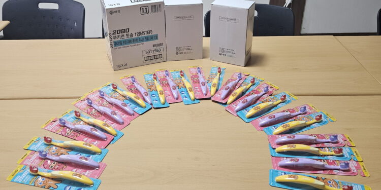 2025년 6월16일 (재)바보의나눔(구요비 대표)에서 부산시전국지역아동센터협의회(문동민 회장)에 아동용 칫솔 24개입(1박스) 78박스를 후원하였다.