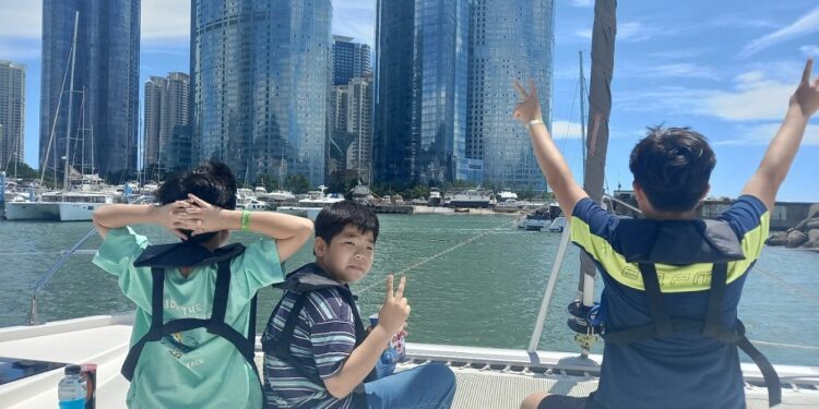 두 번째로 마린시티에 하차하여 요트체험을 진행하였다. 요트경기장에서 출발하여 동백섬, 광안대교, 광안리 해수욕장을 둘러보며 아동들은 부산의 대표적 명소를 직접 보고 느낄 수 있는 기회가 되었다. 탁 트인 부산 바다를 보며 아동들의 그 동안의 스트레스를 해소하고, 또래 친구들과의 친화성과 소속감을 증대시킬 수 있는 귀한 시간이 되었으며, 가장 높은 만족감과 열성적인 반응을 보여주었다.