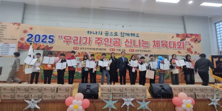 완주군지역아동센터협의회(회장 오미숙)는 지난 10월 31일 완주국민체육센터에서 ‘2025 완주군지역아동센터 연합 체육대회’를 성황리에 개최했다.