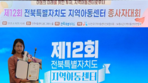 전북특별자치도 전주시 완산구 해님지역아동센터(용머리협동조합 이사장 주순래)가 2025년 9월 16일열린 제12회 전북특별자치도 지역아동센터 종사자대회에서 진행된 센터자랑뽐내기 동영상 공모전에서 3등상을 수상했다.