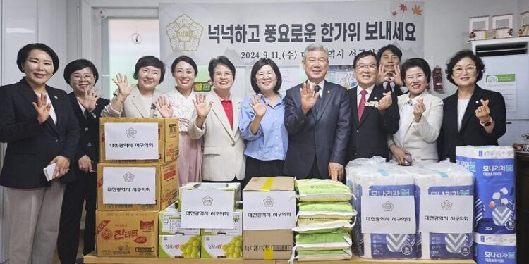 대전광역시 서구의회는 11일 추석 명절을 맞아 관내 사회복지시설 2개소를 방문하여 위문품을 전달하고 지역사회에 따뜻한 정을 나누었다.