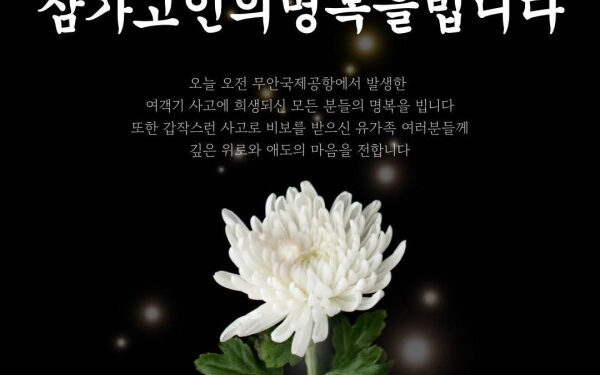 29일 안타까운 무안공항 항공기 참사로 인해 많은 분들이 소중한 생명을 잃었습니다. 이 비극적인 사고로 인해 가족과 친구를 잃은 모든 분들께 깊은 애도의 마음을 전합니다.