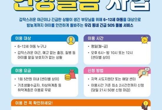 야간 연장돌봄 사업은 지난해 6월과 7월 아파트 화재로 인한 아동 사망 사건 이후 마련된 범부처 대책의 일환으로(’25.9.3, 국무총리 주재 현안점검회의), 부모가 야간에 긴급한 상황이 생길 경우 밤늦게까지 안전하게 아이들을 돌봐주는 긴급돌봄서비스다. 전국 5,500여 개 마을돌봄시설 중 360개소를 야간 연장돌봄 사업 참여센터로 선정하였으며, 2026년 1월 5일부터 운영을 시작했다.