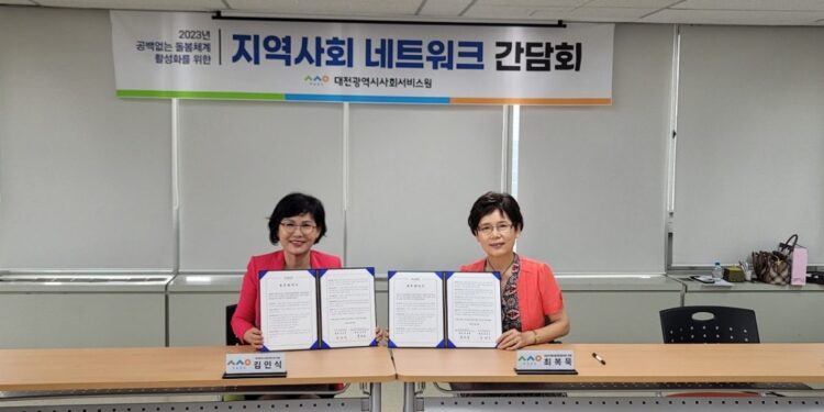 2023년 6월 28일 대전사회서비스원에서 대전 지역아동센터협의회 임원들과 대전 사회서비스원과의 네트워크 간담회와 업무협약 체결을 위한 협약식을 개최하였다.