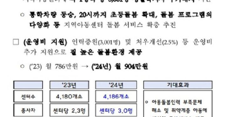 23년 월 786만원 지원하던 것을 2024년에는 월 904만원으로 증가해서 지원하겠다는 것이다. 그러나 증액분은 12개월 평균 금액이며 , 추가인력 인건비, 지원개소수 증가분 운영비, 추가운영비(법인화된 지역아동센터 지원(금액 동결이지만 지원 센터 수 증가 )등의 금액임을 지역아동센터 현장은 분명히 인지하고 착시적인 착각을 갖지 말아야 할 것이다.