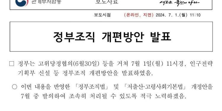 2024년 7월 1일 정부조직 개편방안을 발표하였다.