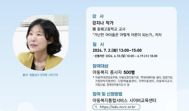이번 교육에는 아동학대, 입양, 가정위탁, 아동돌봄, 자립지원 등 아동복지 분야 종사자 1천여 명이 신청하며 많은 관심을 보였다. 강연 후에는 강지나 작가와 수강자들과의 소통 시간이 마련된다.