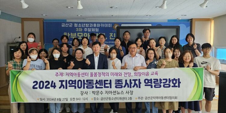2024년 8월 27일 금산군 청소년미래센터에서 “2024 지역아동센터 종사자 역량강화” 교육을 실시하였다.