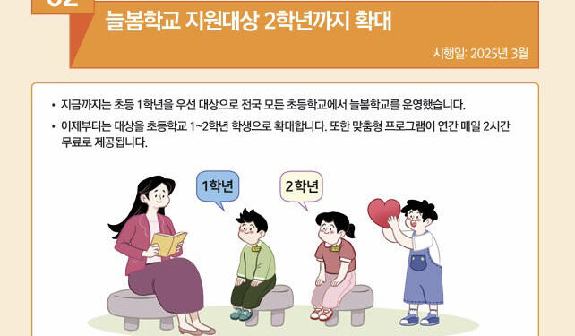 2025년 1월 1일부터 늘봄학교와 아이돌봄서비스의 지원 대상이 확대된다. 이번 조치는 교육부와 보건복지부의 협력 하에 이루어졌다.