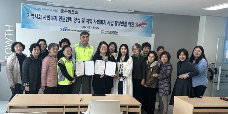 대전서구사회복지협의회(회장 정유근_새싹지역아동센터)는 지난 9일 배재대학교 토털라이프지원센터와 업무협약을 체결하고, 지역사회 복지증진을 위한 공동 행보에 나섰다. 이번 협약은 지역 내 사회복지 전문 인력 양성과 복지사각지대 해소라는 공동의 목표를 실현하기 위한 실질적인 협력 기반을 마련했다는 점에서 의미가 크다.