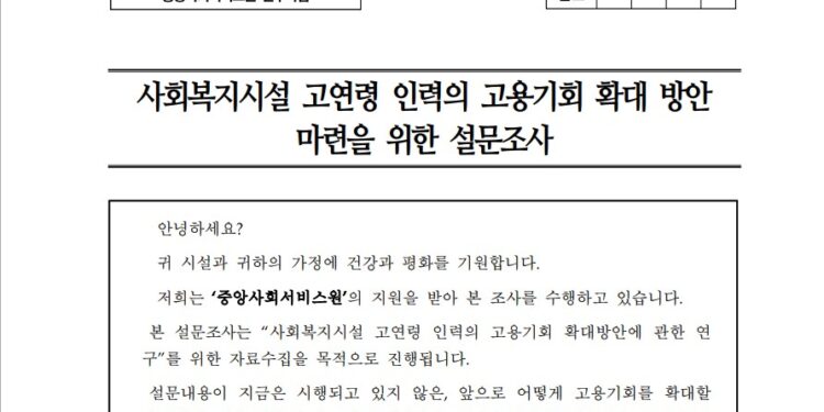 2025년 8월, 중앙사회서비스원의 지원 아래 덕성여자대학교 산학협력단이 주관한 설문조사가 전국 사회복지시설을 대상으로 진행된다. 이번 조사는 고령 인력의 고용기회 확대 방안을 마련하기 위한 기초자료 수집을 목적으로 하며, 사회복지시설의 시설장과 종사자들을 주요 응답자로 삼았다.