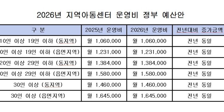 정부가 발표한 2026년도 지역아동센터 예산안이 현장의 기대에 못 미친다는 지적이 잇따르고 있다. 인건비는 소폭 인상됐지만 운영비는 전년과 동일하게 책정되면서, 실질적인 지원은 오히려 줄어든 것 아니냐는 우려가 제기되고 있다.