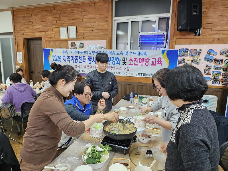 이번 행사는 금산군에서 예산을 지원하는 사업으로 교육은 지역아동센터 운영 실무에 대한 이해를 높이는 동시에, ‘희망이음 교육’과 ‘푸드테라피’를 통해 종사자들의 정서적 회복과 소진 예방을 도모하는 데 중점을 두었다.