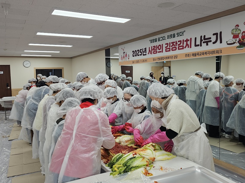 월평·갈마지역 해울목교육복지네트워크가 주최한 ‘2025 사랑의 김장김치 나누기’ 행사에는 지역 내 학교, 행정복지센터, 지역아동센터 등 9개 기관이 참여해 저소득 가정과 독거 어르신 등 취약계층을 위한 김장김치 나눔을 함께했다.
