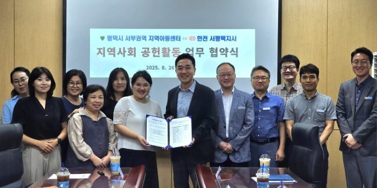 한국전력 서평택지사(지사장 박훈하)는 평택시 서부권역 지역아동센터(권영장 한유미)와 사회공헌활동을 위해 업무협약을 체결했다고 27일 밝혔다.